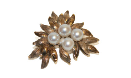 A vintage 1960’s Mikimoto Lane Crawford 14K gold brooch with case