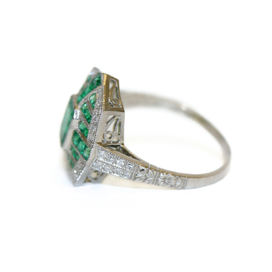 Platinum emerald and diamond Art Deco style cocktail ring