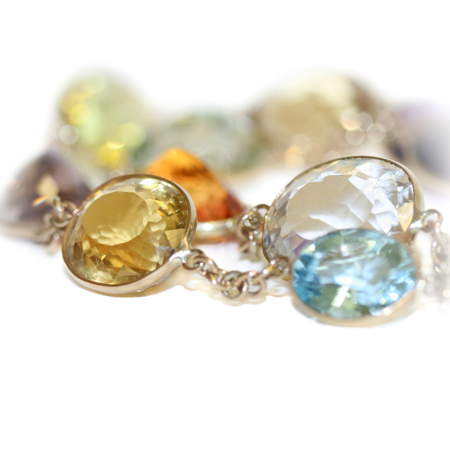 9ct gold multi-stone graduated line necklace