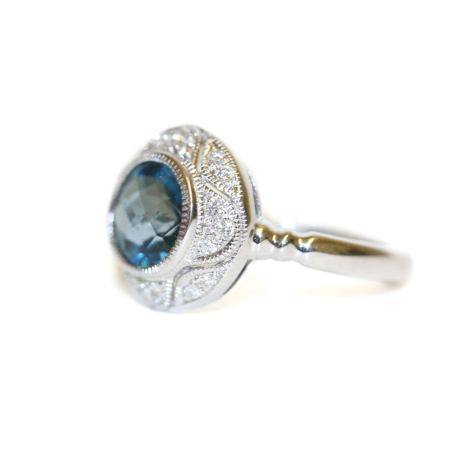 9ct white gold London blue topaz and diamond target ring